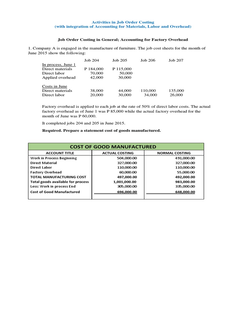 Baya Exercise 4 Job Order Costing Accounting For Material Pdf Cost Of Goods Sold Debits And Credits